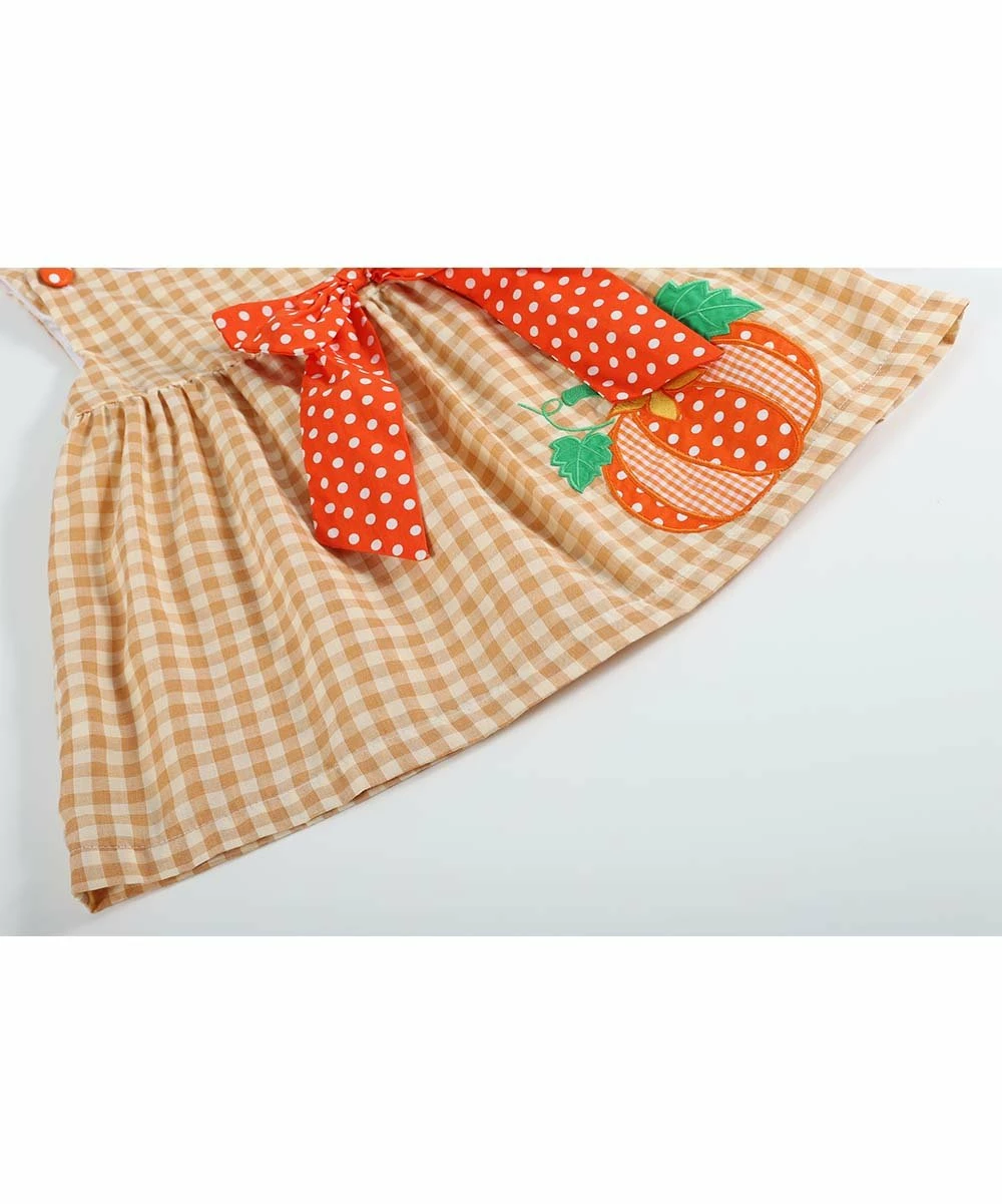 Add a charming look to your little one’s wardrobe with this comfy cotton A-line dress adorned with seasonal style.