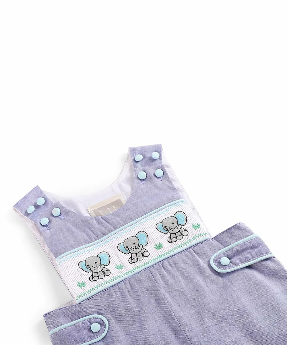Your little one will be ready to play all day in this smocked romper boasting an allover print and adorable graphics.