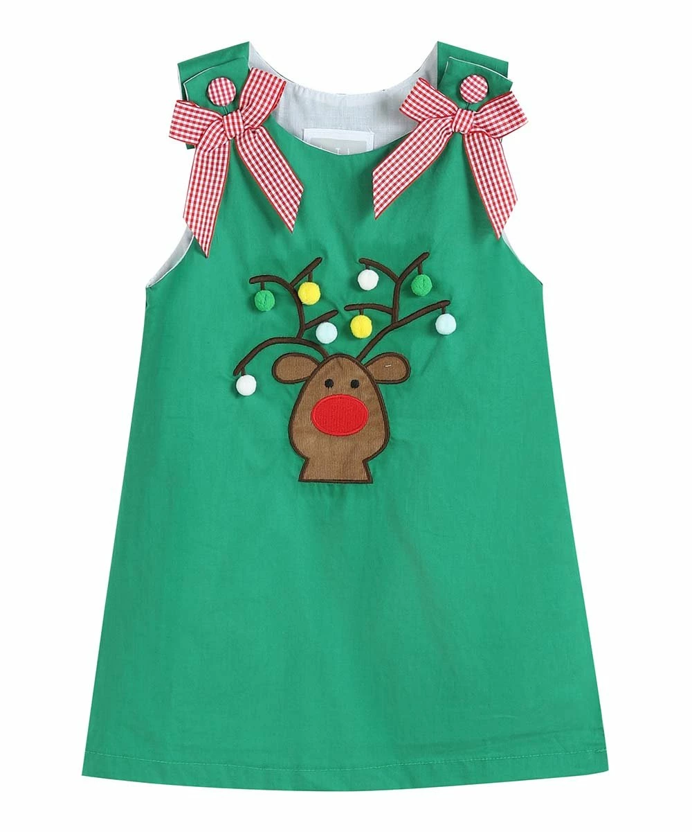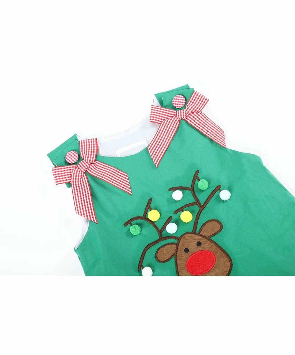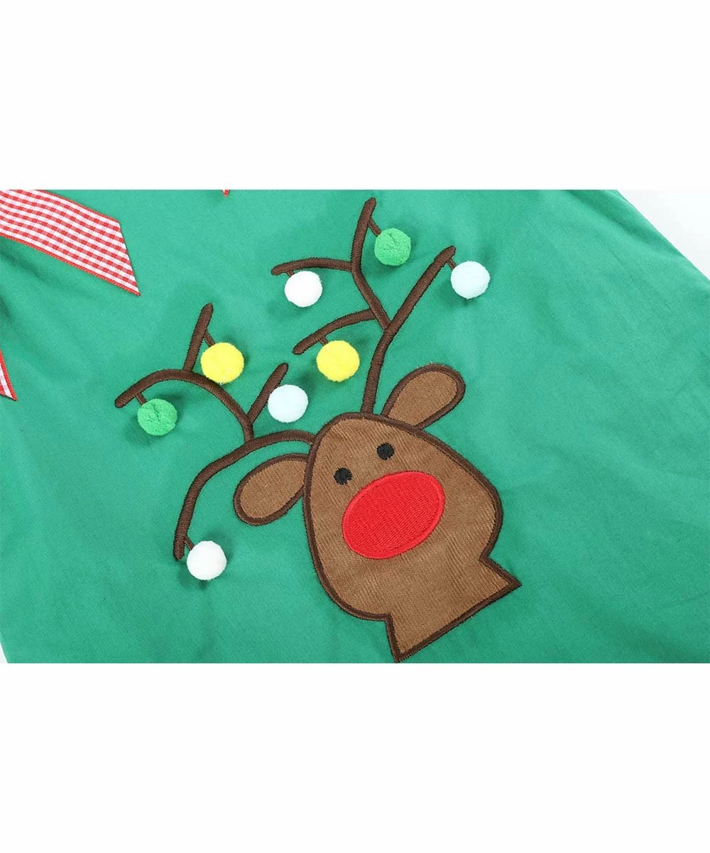 Get your little holiday elf in the festive mood with this all-cotton dress adorned with a pom-pom reindeer.