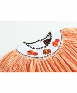 Add a charming look to your little one’s wardrobe with this bishop dress smocked with seasonal style.