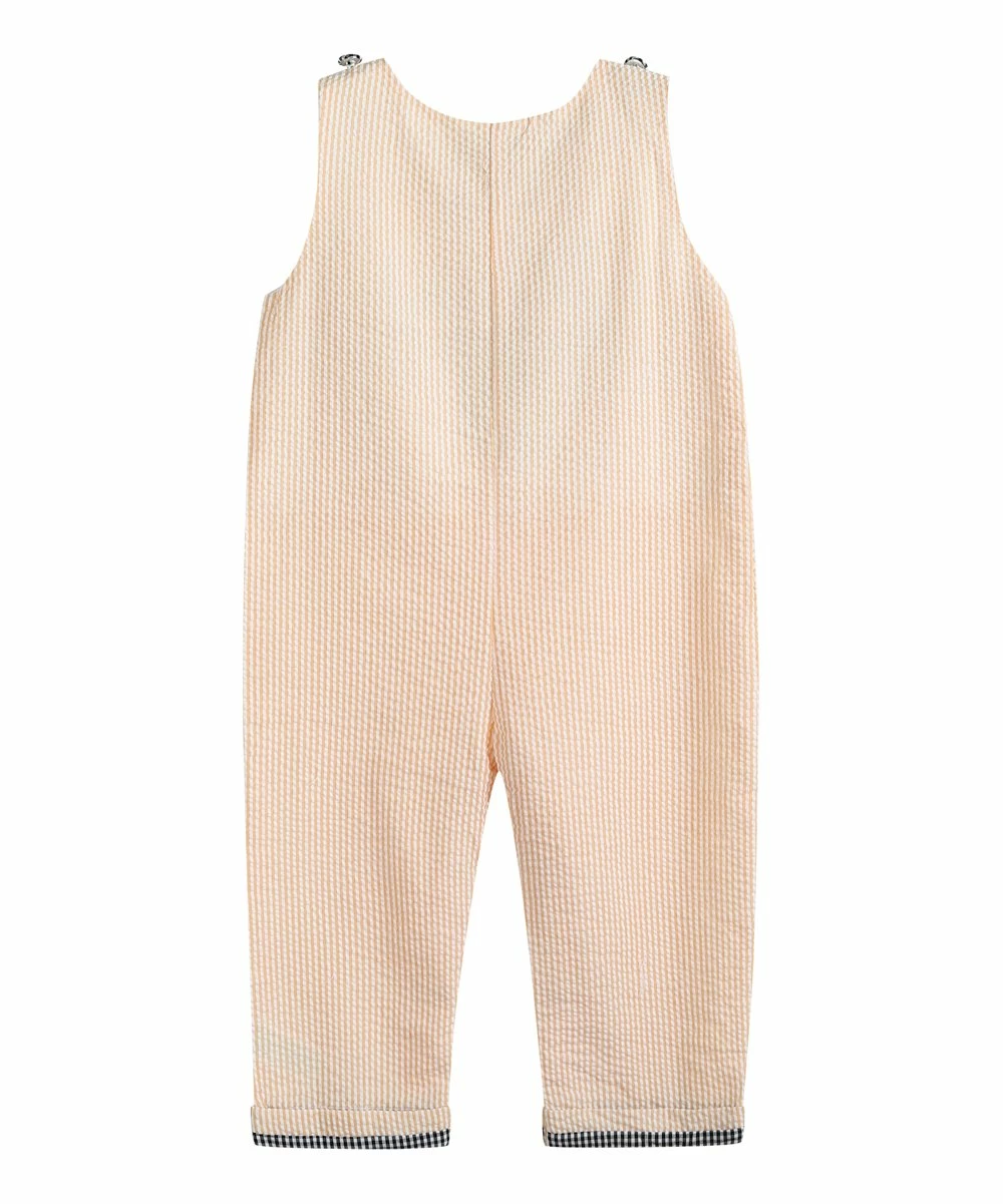 Breathable cotton overalls featuring convenient snaps along the legs and buttons at the shoulder straps.