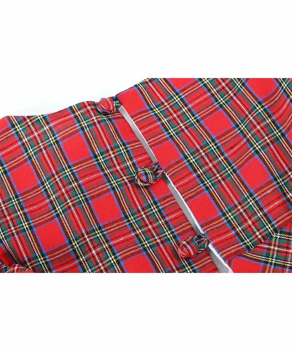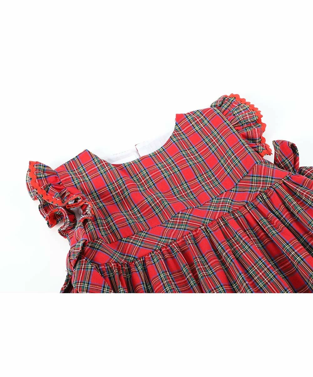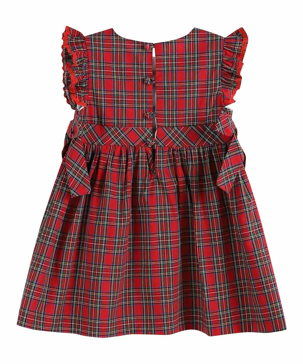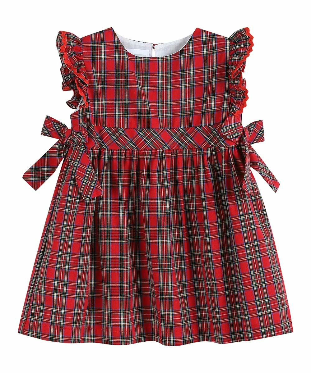 Get your little holiday elf in the festive mood with this all-cotton dress decked out in ruffles and a plaid print.