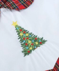 Get your little one dressed for holiday photos in this cotton Christmas-themed short-sleeve romper, with an embroidered chest, sweet Peter Pan collar and snaps down the legs for easy dressing.