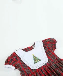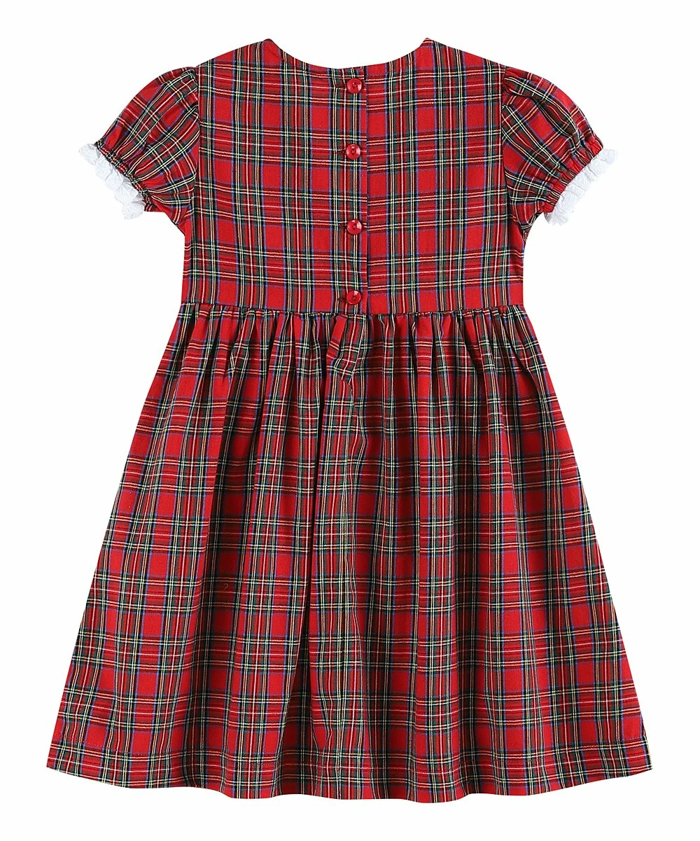 Get your little one dressed for holiday photos in this cotton Christmas-themed A-line dress with puffy sleeves and a charming yoke detail at the front.