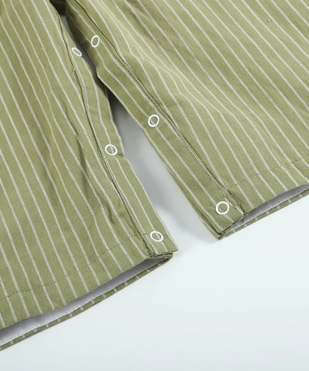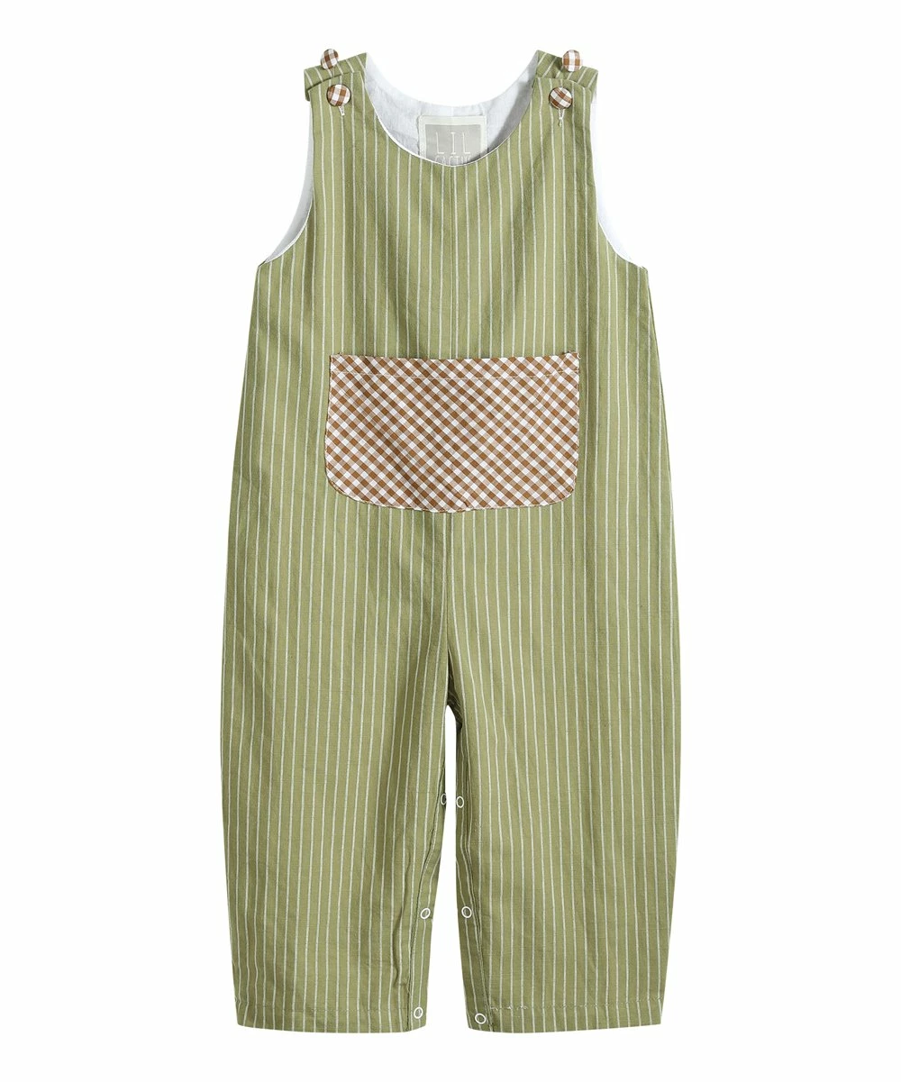 Breathable cotton overalls featuring convenient snaps along the legs and buttons at the shoulder straps. Contrast pocket along the chest.