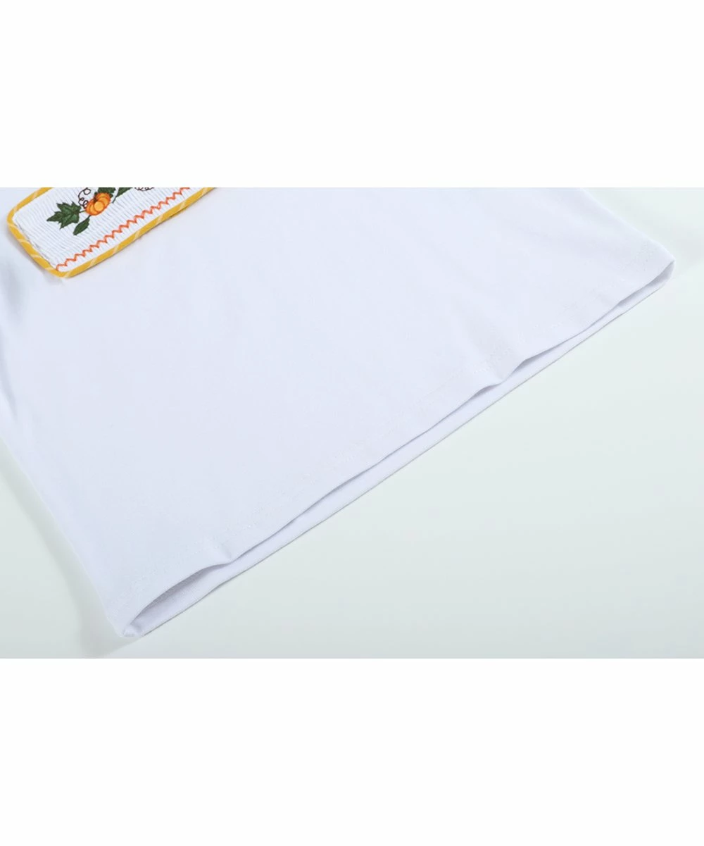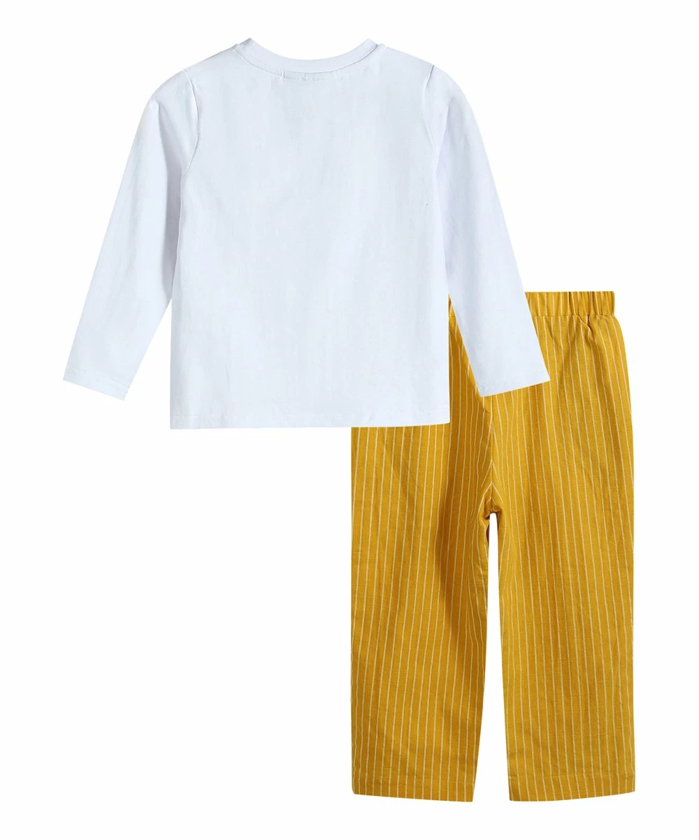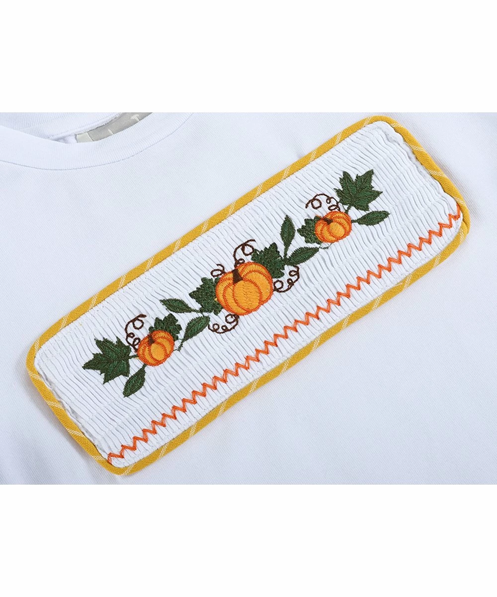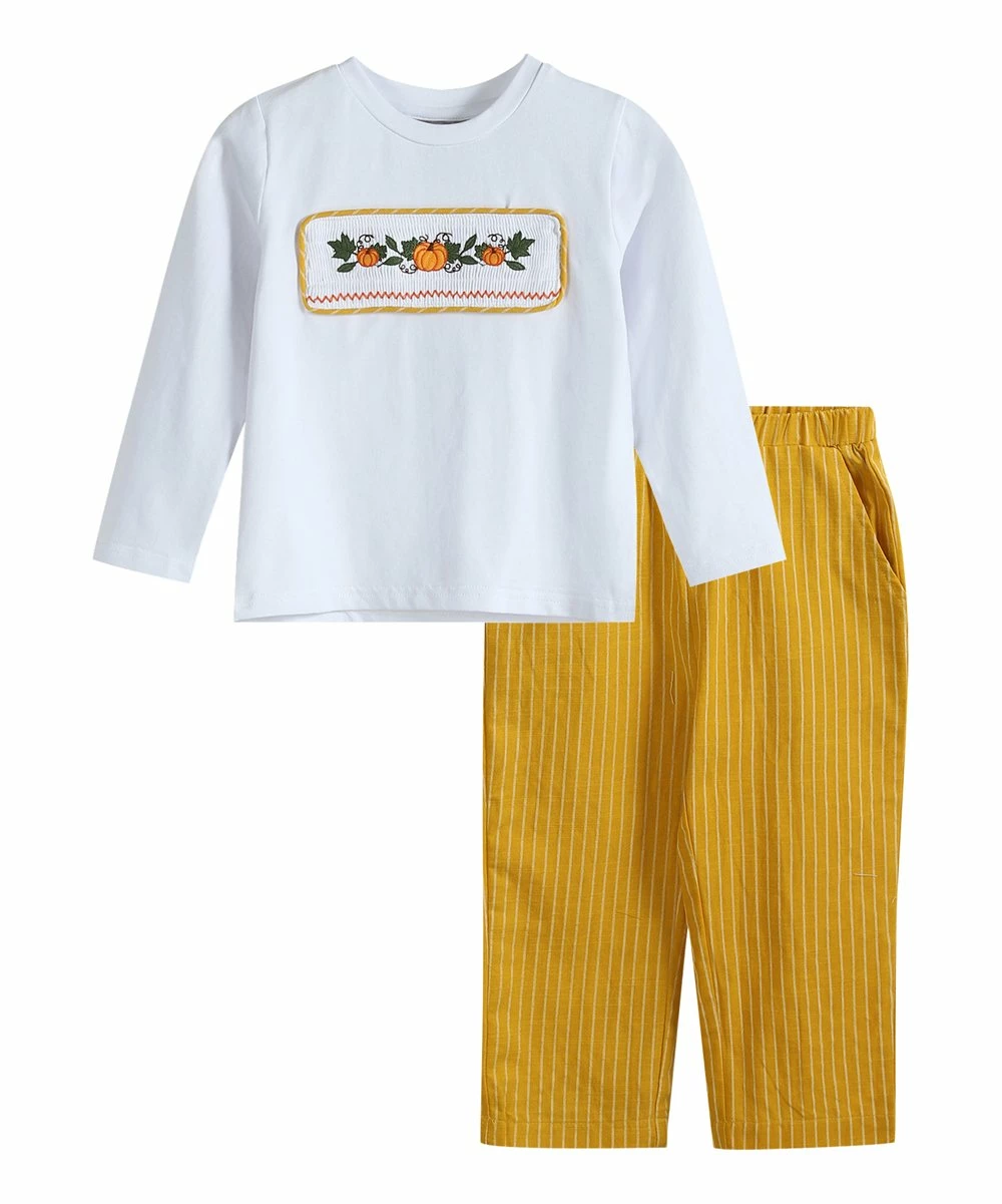 - Includes one white pumpkin top and one pair of mustard pants (two pieces total)